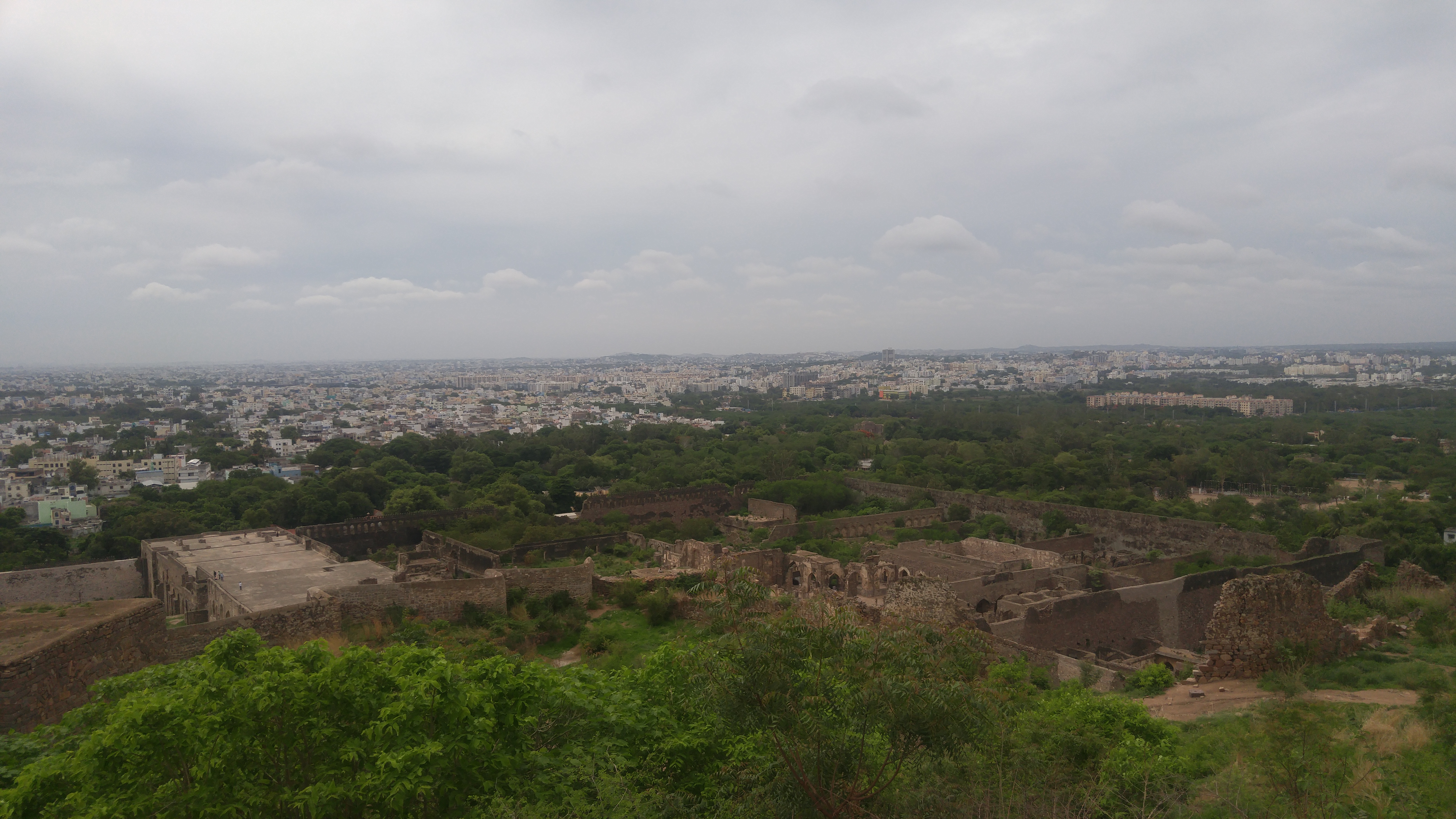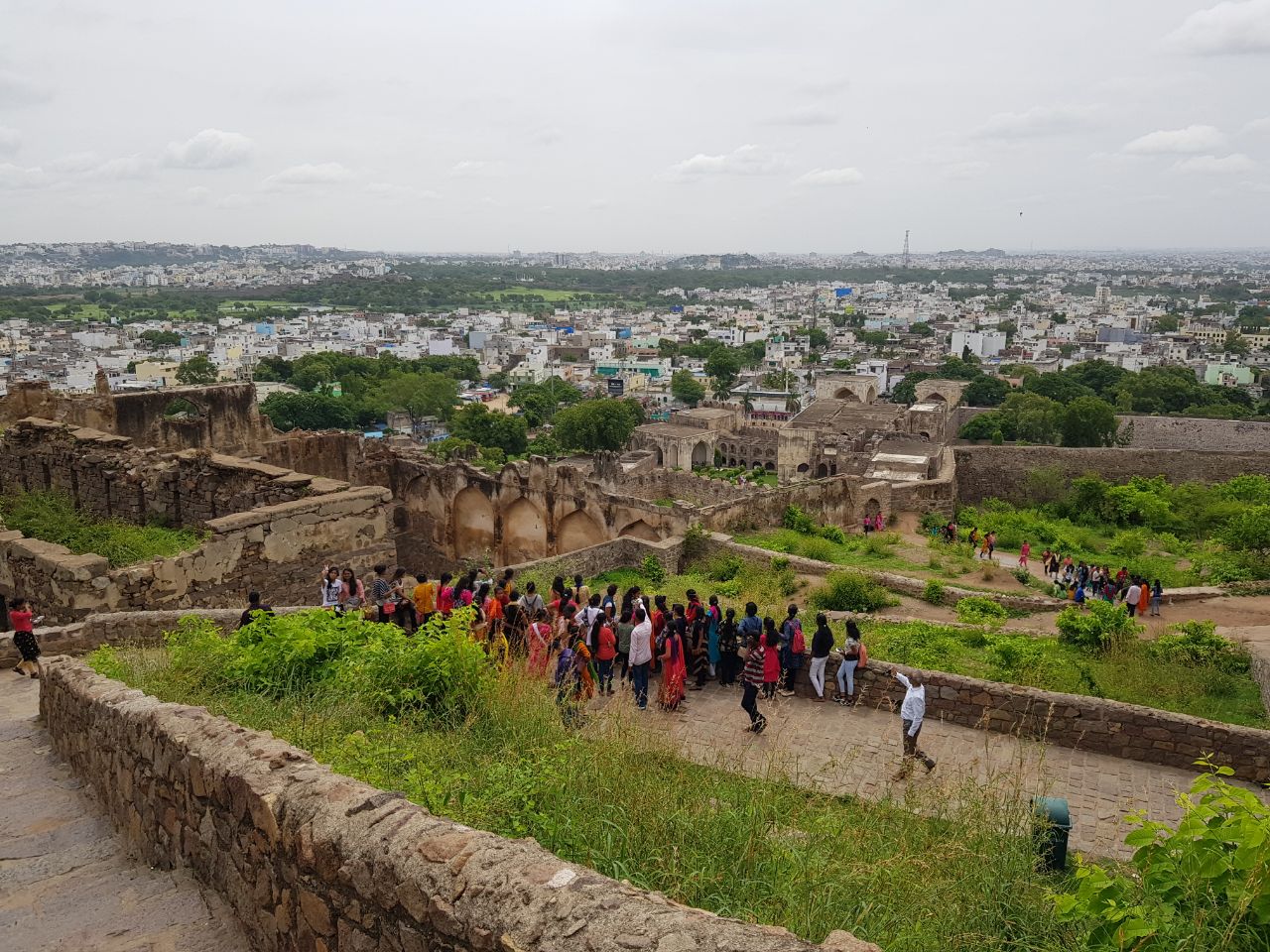 하루 종일 비가 온다는 일기예보 때문에 걱정되기는 했지만, 이번 출장 중 유일한 기회를 놓칠 수 없어 숙소에서 우버 택시를 불러 첫 번째 방문지인 골콘다 요새(Golconda Fort)로 출발했습니다. 9시 반경 도착하여 한 시간 반 정도 머물렀습니다.