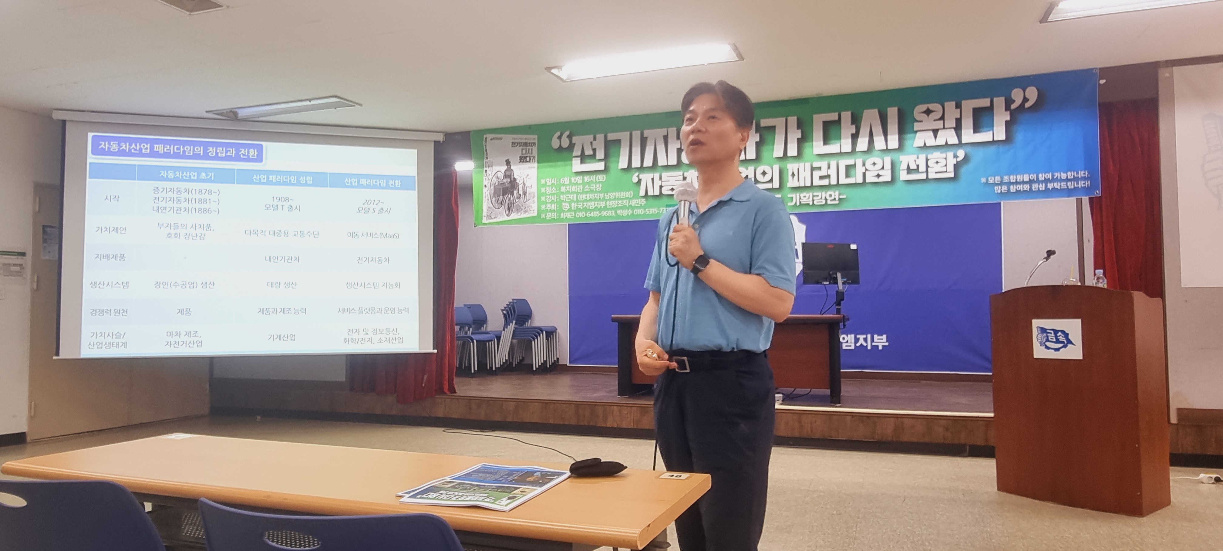 지난 6/10(토) 오전 현대자동차지부 정비위원회 고양지회 조합원 수련대회에서 강연한 데 이어 오후에는 한국지엠지부 현장조직인 새민주가 주최한 기획 강연에 참석했습니다.