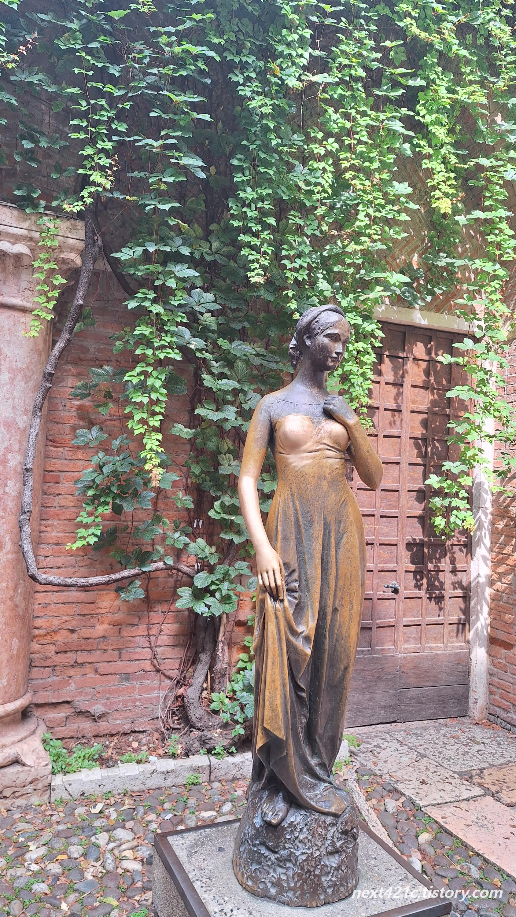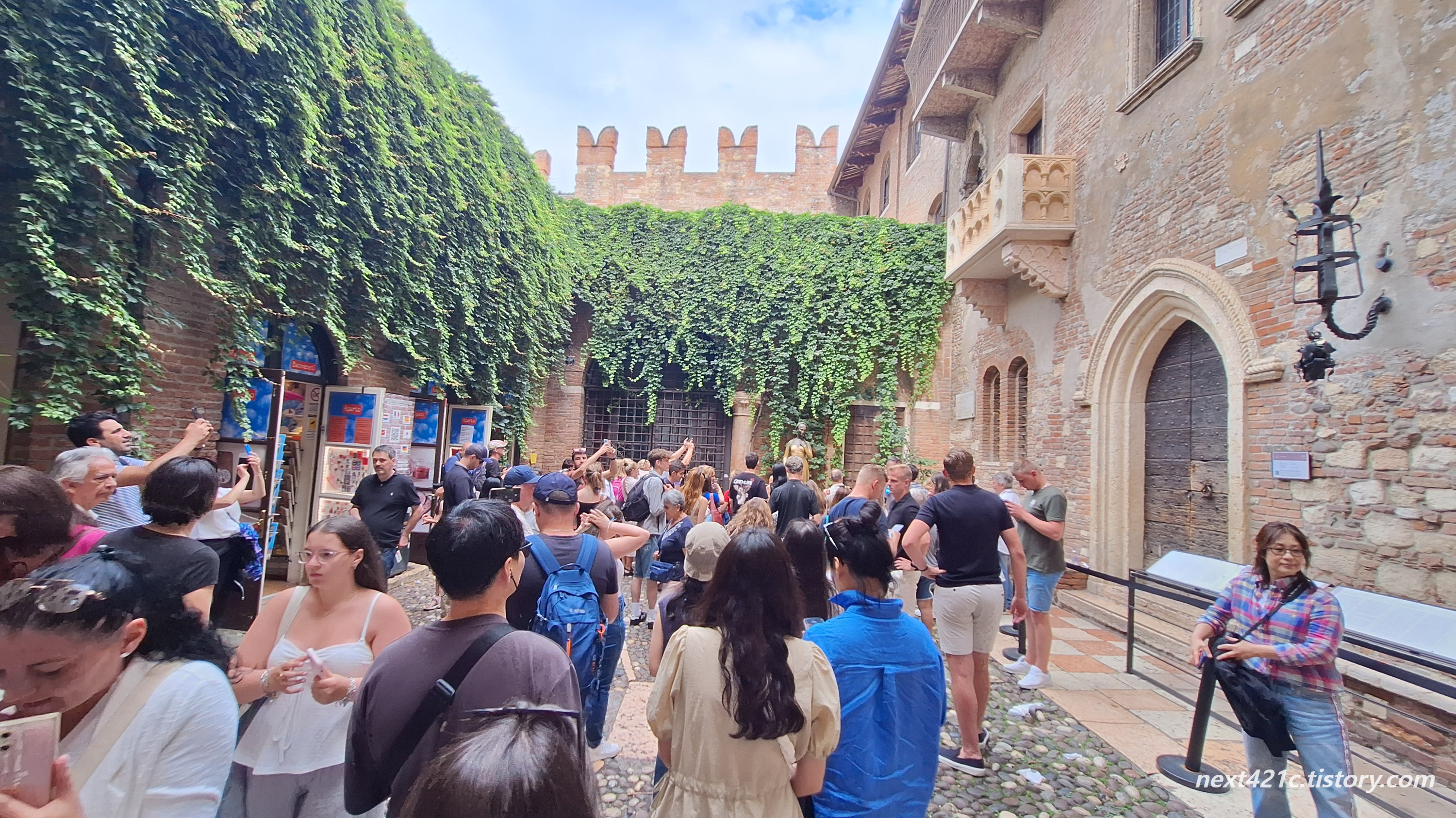 많은 사람들이 찾는 줄리엣의 집은 사실 줄리엣과 아무런 관련이 없다. 1905년 베로나 시에서 일방적으로 지정한 곳이다. 줄리엣의 집은 허구이지만, 줄리엣의 모델이 되었던 여인의 무덤이 베로나에 있다. 브라 광장에서 멀지는 않지만 주요 관광지와 다른 구역에 홀로 있어 가보지 못했다. 자유시간이 너무 짧았다. “로미오와 줄리엣”의 시대적 배경인 중세시대의 모습을 잘 간직하고 있는 베로나이기에 줄리엣의 집도 사랑받게 되었으리라.