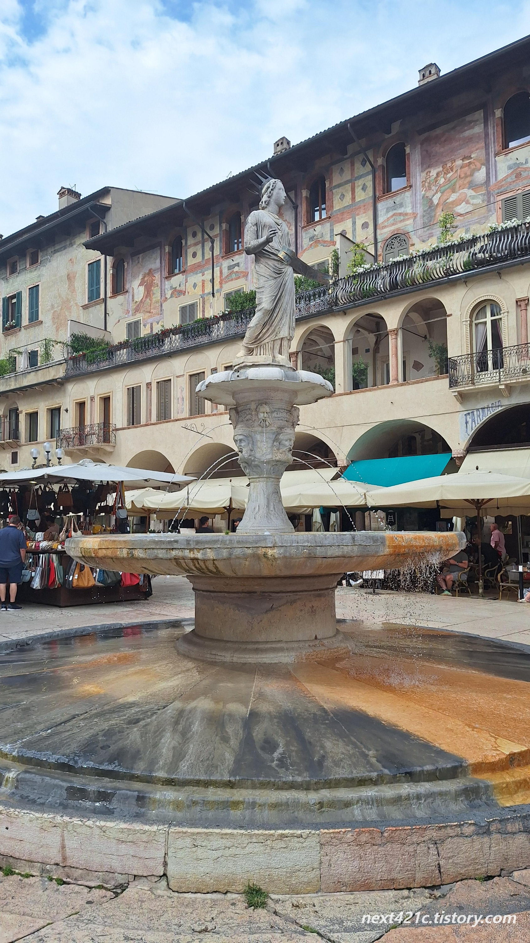에르베 광장 가운데 서 있는 분수 베로나의 마돈나 Madonna Verona는 이천 년 전 로마시대에 만들어진 분수 위에 14세기 마돈나상만 추가했다고.