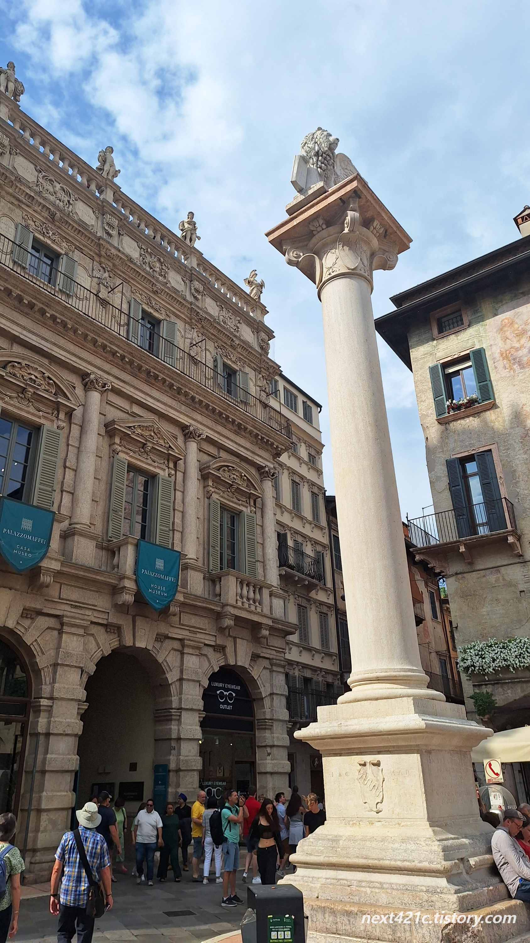 마페이 궁 앞에 있는 산 마르코 기둥 Colonna di San Marco은 베네치아가 베로나를 통치하던 1523년에 세워졌다. 베네치아의 수호성인인 성 마르코의 상징 동물이 사자이고, 날개 달린 사자는 베네치아 공화국의 상징이다.