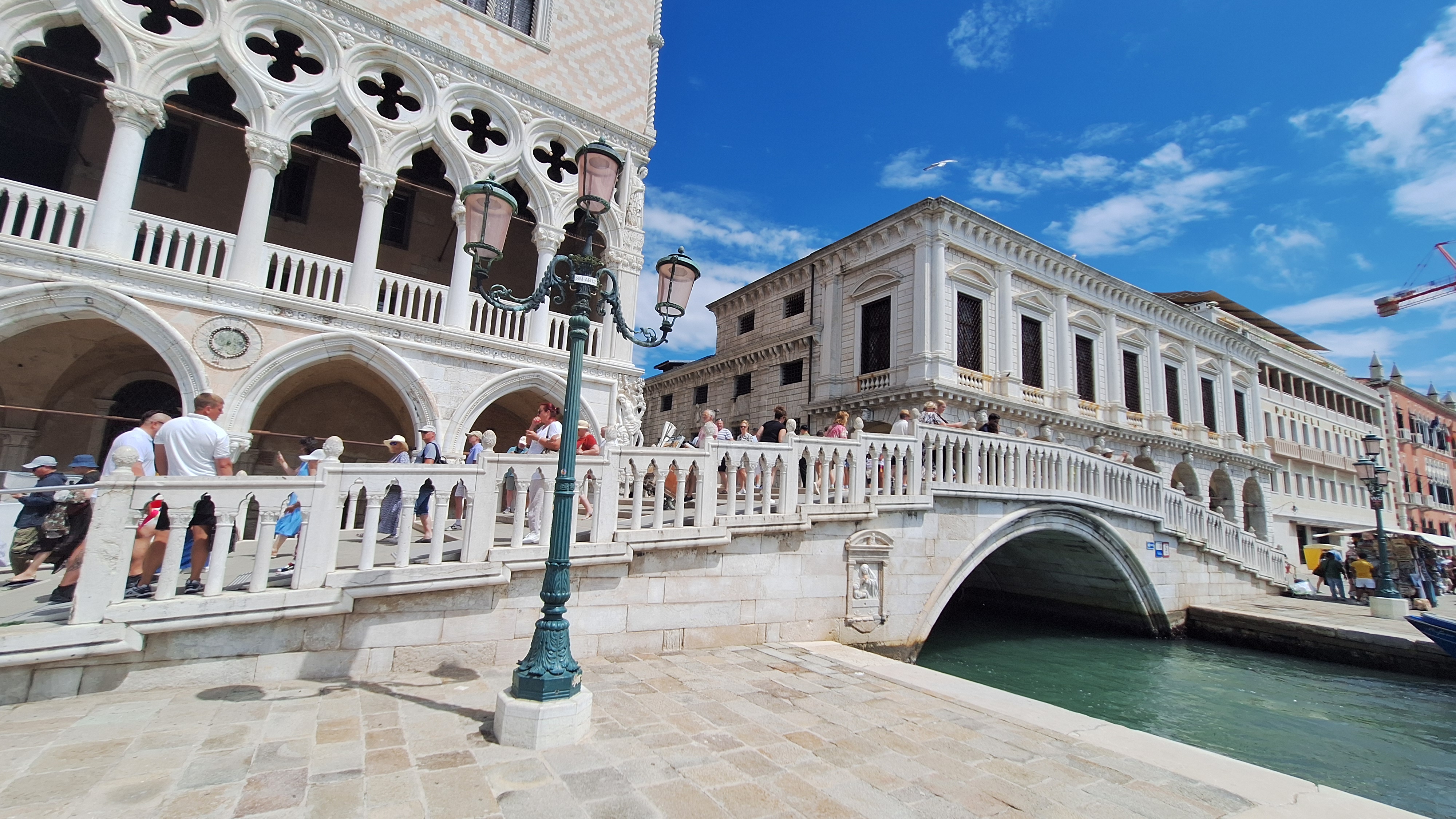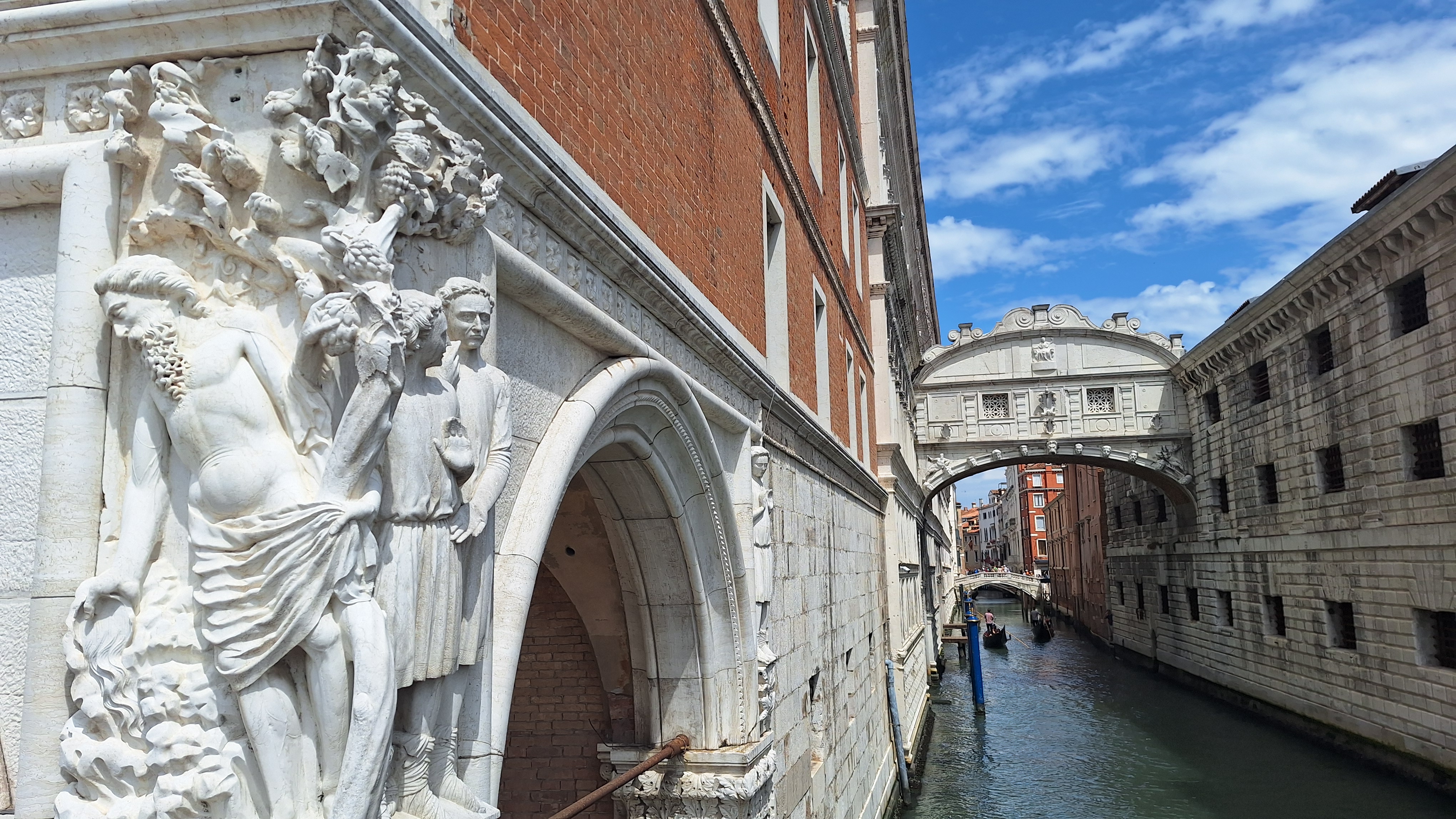 아래 사진에서 중앙에 보이는 다리가 바로 탄식의 다리, 왼쪽 건물은 재판소가 있었던 총독 관저 두칼레 궁, 오른쪽 건물은 감옥. 왼쪽 맨 앞에 있는 남자, 그의 표정이 탄식과 후회를 담고 있는 게 아닌지.