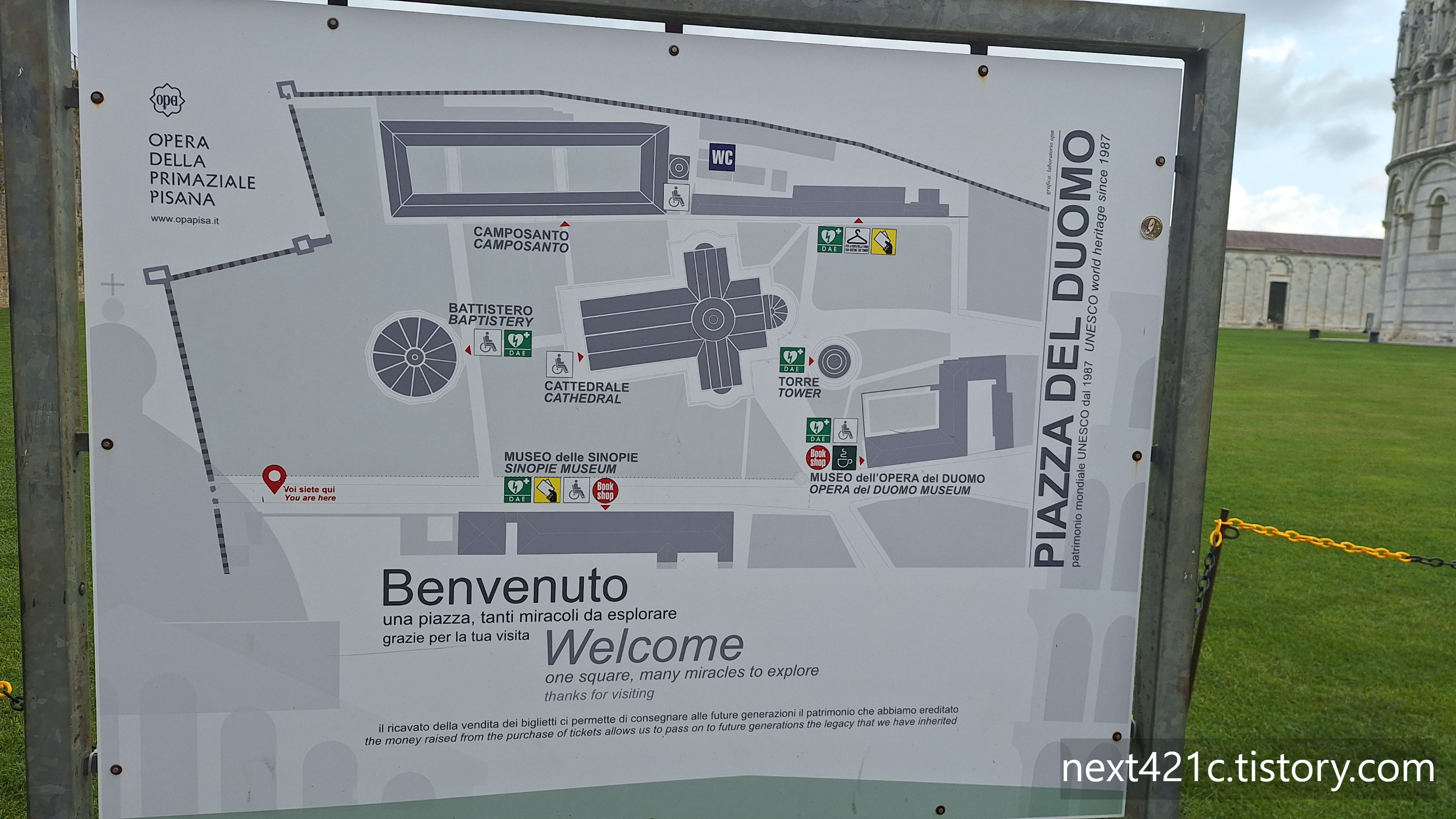 두오모 성당과 사탑이 있는 미라콜리 광장 Campo dei Miracoli("기적의 광장" - 왜 기적의 광장인지?)은 피사가 번성했던 11세기에 조성됐다.
