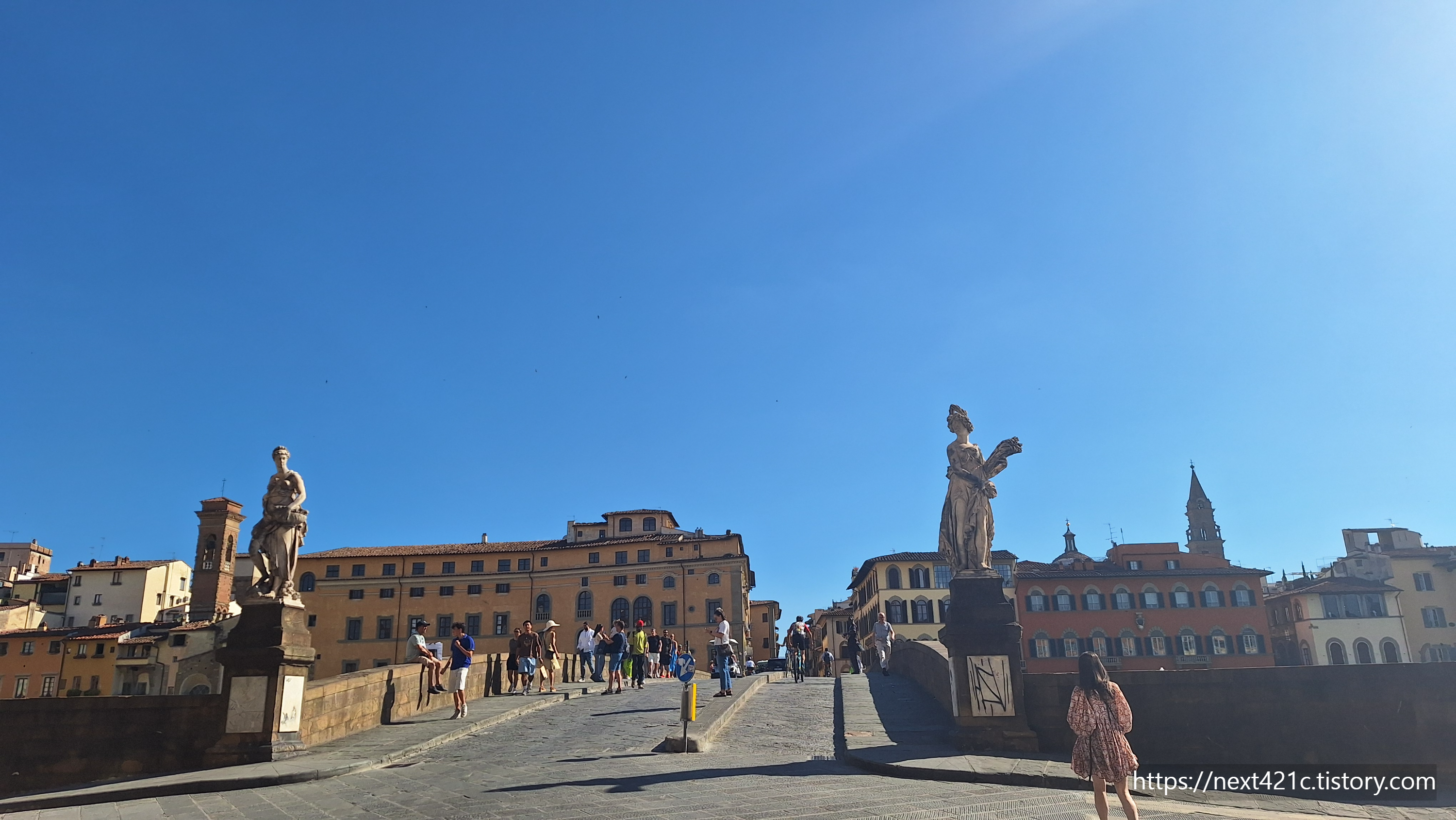 베키오 다리 Ponte Vecchio는 이탈리아 피렌체에 있는 아르노강 위에 놓인 중세에 만들어진 다리이다. 다리 위에 가게로 쓰이는 건물이 만들어져 있는 곳으로 유명하며, 원래 푸줏간 가게가 처음 들어섰으나, 지금은 보석상, 미술품 거래상과 선물 판매소가 들어서 있다. 가 보지는 못 하고 멀리서 사진만 찍었다.