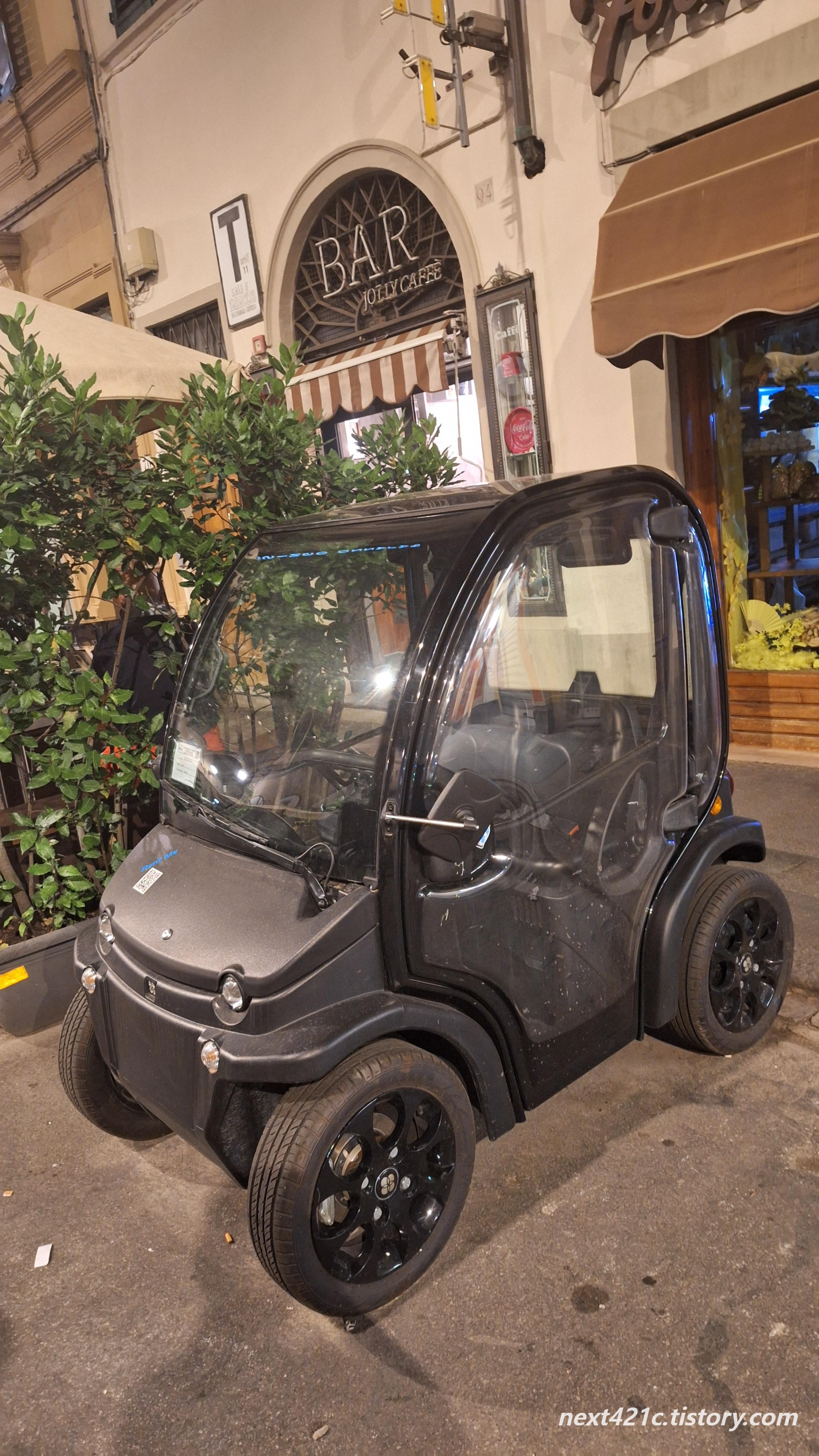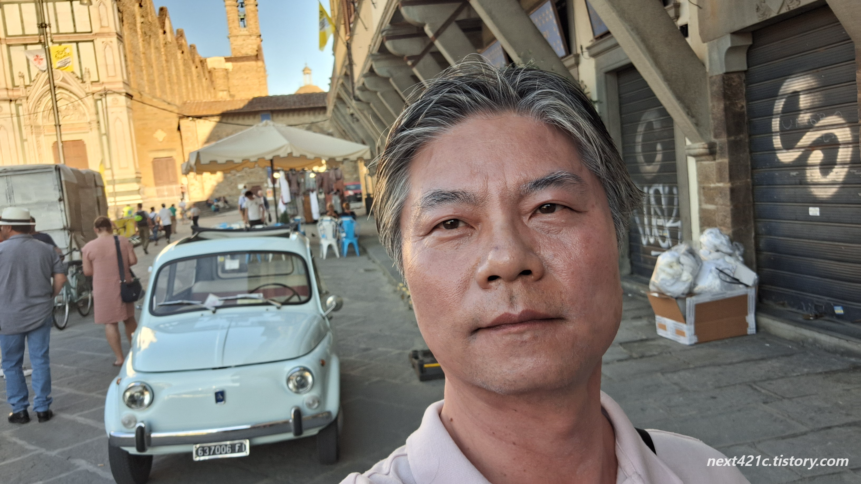 산타 크로체 광장에서 앙증맞고 예쁜 자동차를 발견했다. 난생처음 본 자동차. 그 유명한 피아트 500(친퀘첸토)의 1세대(1957년부터 1975년까지 생산) 중에서도 Nuova 500. 2기통 479CC 엔진 13마력.