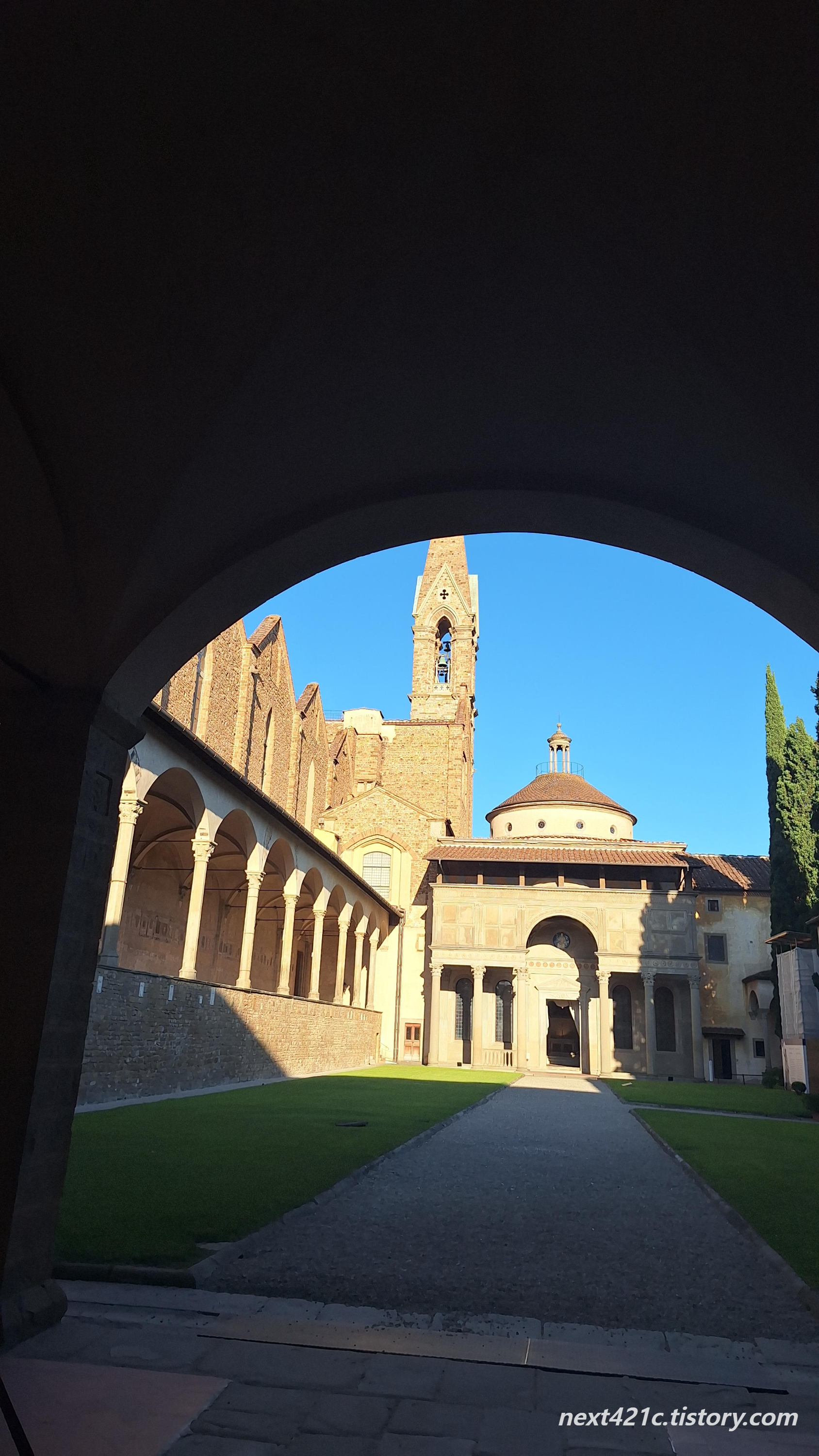 아래는 파치 예배당 Pazzi Chapel. 파치 예배당 Pazzi Chapel은 이탈리아 피렌체에 있는 산타 크로체 성당의 남쪽 측면에 있는 "첫 번째 회랑"에 위치한 예배당이다. 필리포 브루넬레스키 Filippo Brunelleschi의 작품으로 여겨지며 르네상스 건축의 걸작 중 하나로 여겨진다고.
