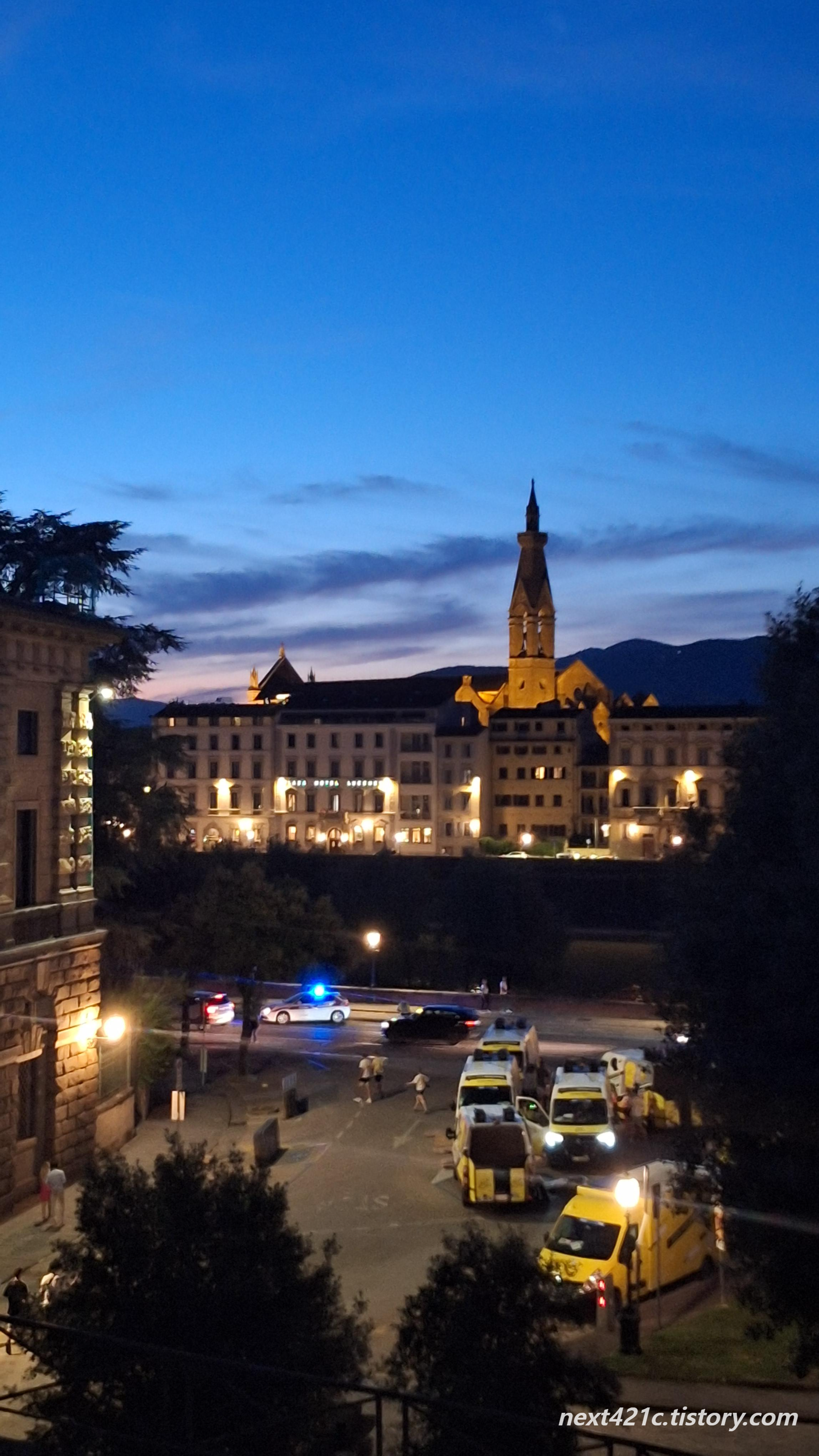 이제 광장에서 내려가 피레첸 야경을 보면서 숙소로 가는 중.