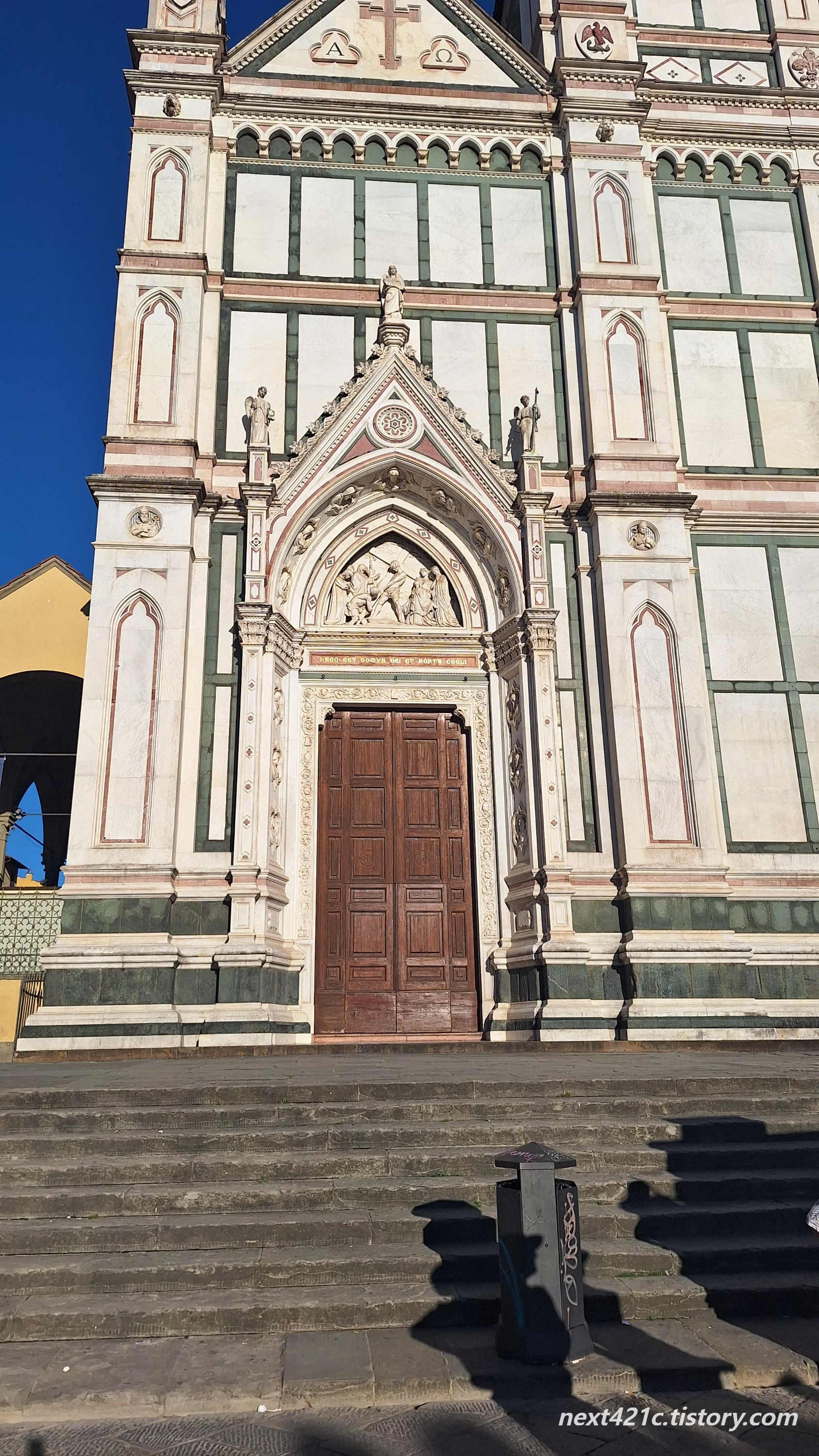 산타 크로체 성당 Basilica di Santa Croce - 성 십자가 성당은 이탈리아 피렌체에 위치한 프란치스코회의 주요 교회 - 세계에서 제일 큰 프란치스코회 성당이자, 로마 가톨릭교회의 소 바실리카이다. 산타 크로체 광장에 있으며, 피렌체 대성당에서 남동쪽 800m 거리에 있다. 미켈란젤로, 갈릴레오, 마키아벨리, 시인 포스콜로, 철학자 젠틸레, 작곡가 로시니 같은 이탈리아의 가장 저명한 이들이 묻힌 곳이기도 하며, 이를 통해 이탈리아 영광의 교회 Tempio dell'Itale Glorie로도 알려져 있다.