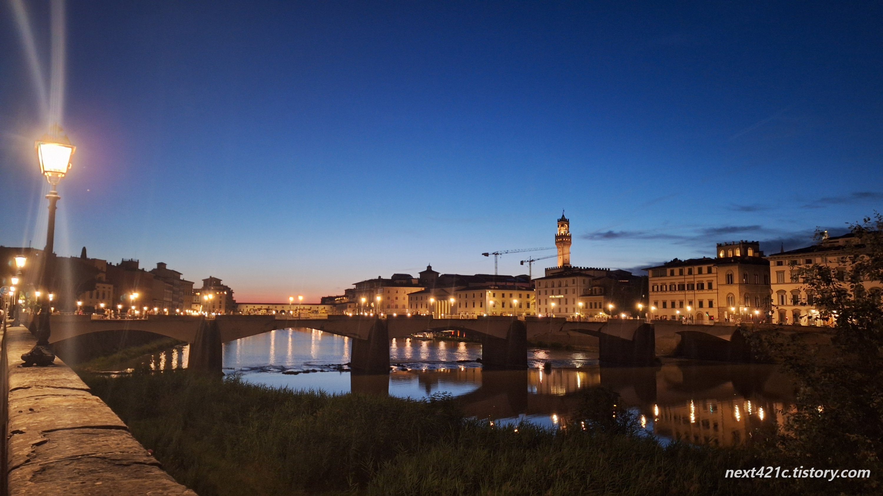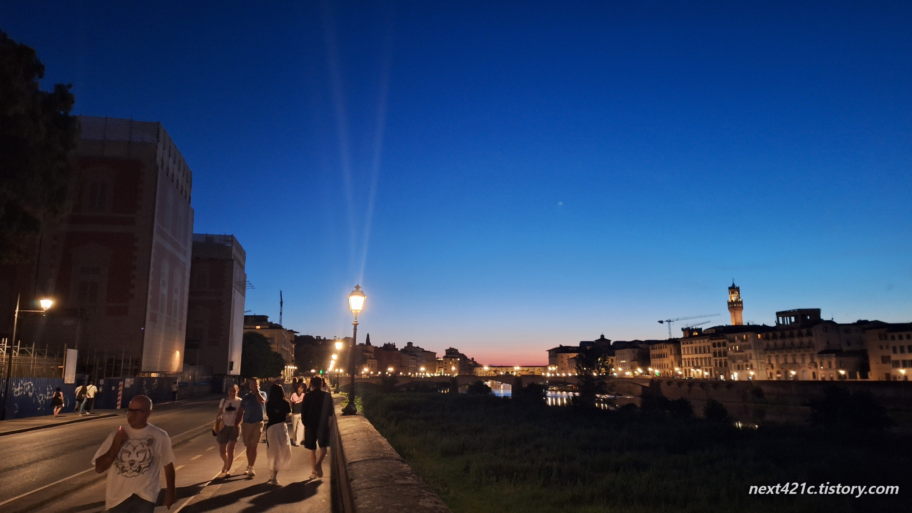 이제 광장에서 내려가 피레첸 야경을 보면서 숙소로 가는 중.