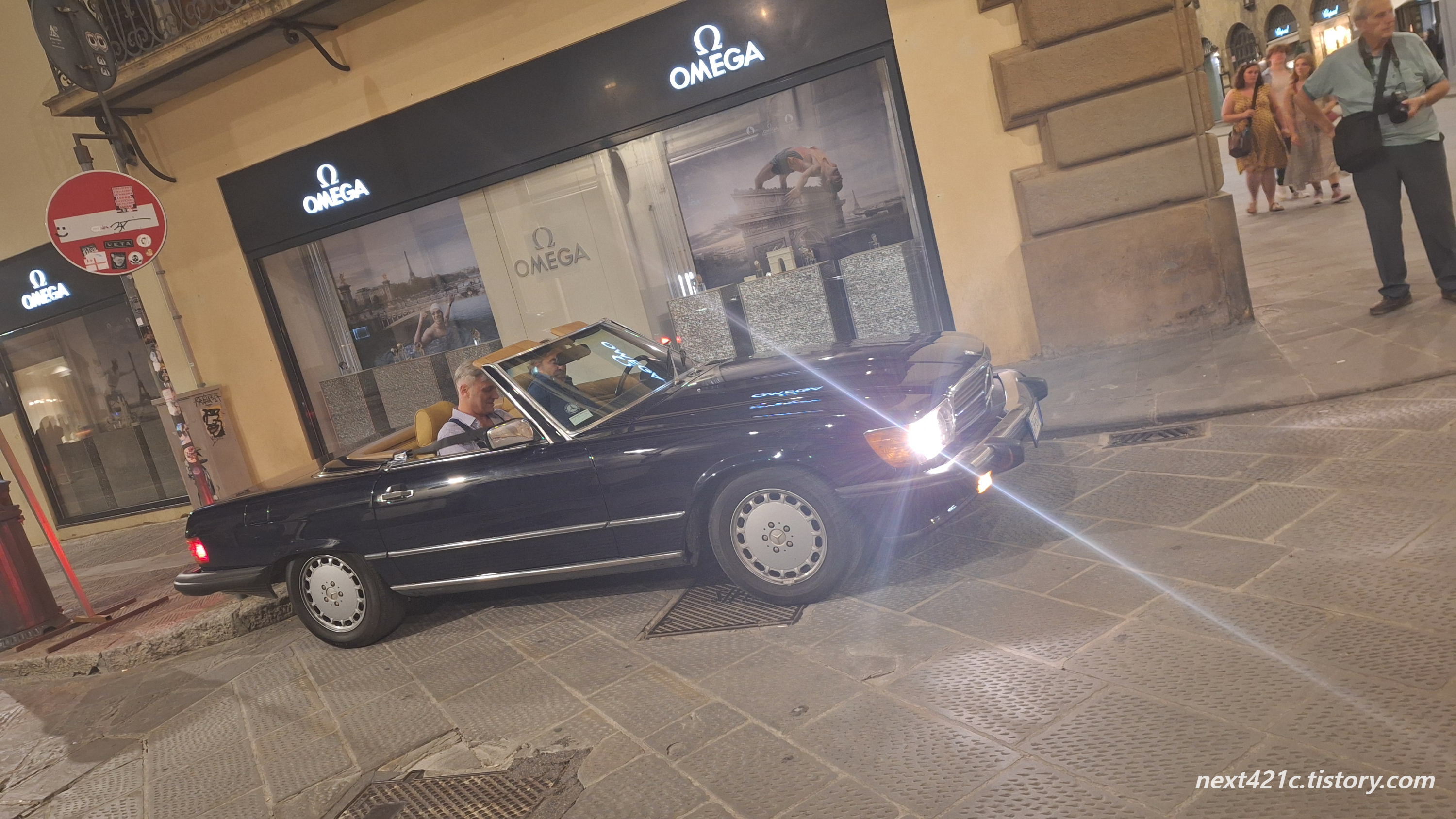 내일의 여행을 위해 아쉬움을 뒤로 하고 숙소로 가던 중, 또 멋진 차 발견. 오래된 벤츠 오픈카와 실용적인 소형차들. 미와 실용, 아름다운 가치들이다.