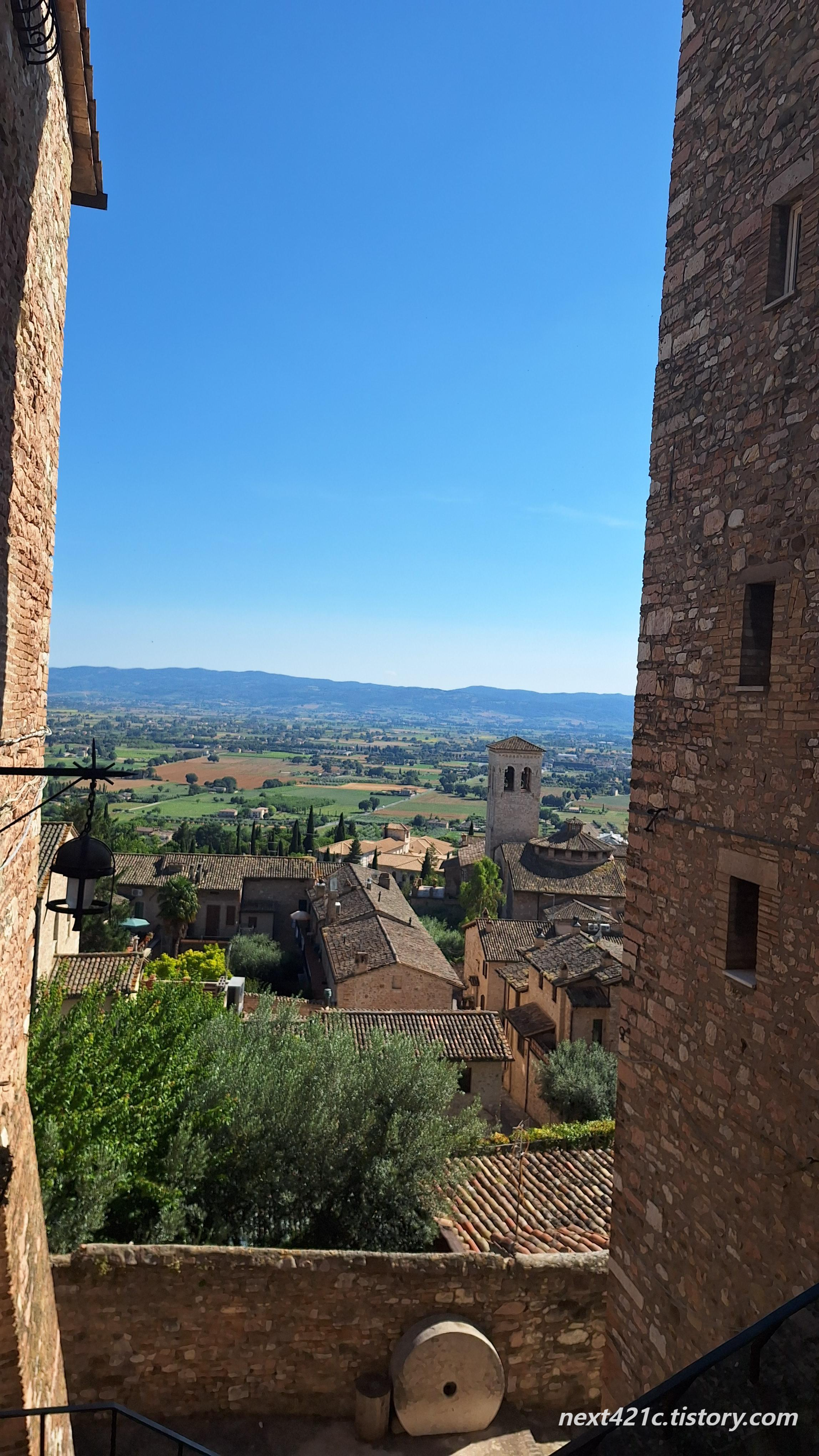 아씨시(Assisi)는 이탈리아 중부의 작은 산이 많은 지역인 움브리아주에 속한 곳으로 스바지오산 경사면에 펼쳐져 있는 작고 아름다운 마을. 성벽에 둘러싸인 요새와 같은 곳으로 정상에 14세기에 지어진 성이 남아 있다.