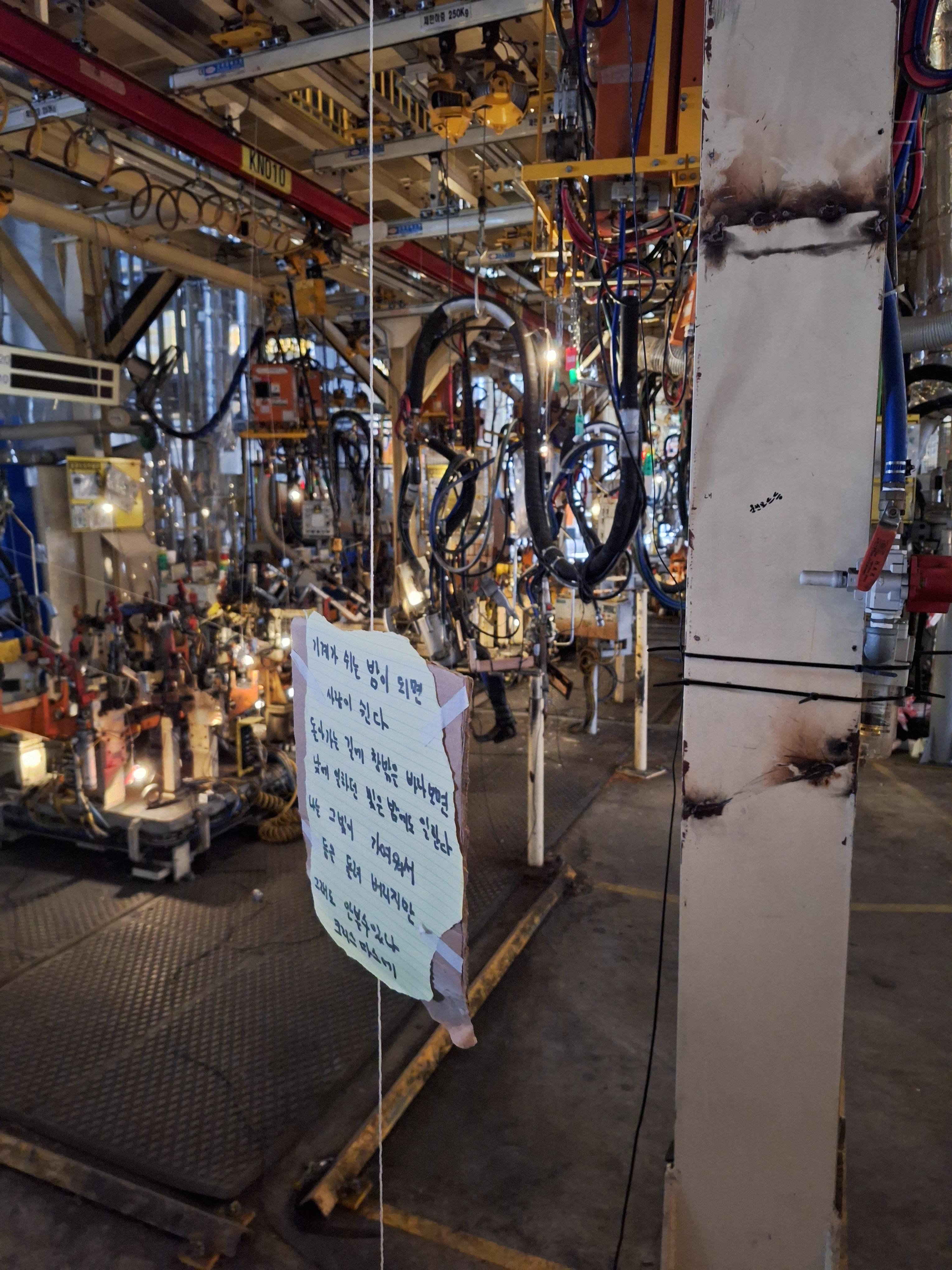 안돈 줄을 당겨 라인을 세우면서 투쟁했던 이가 일했던 공정