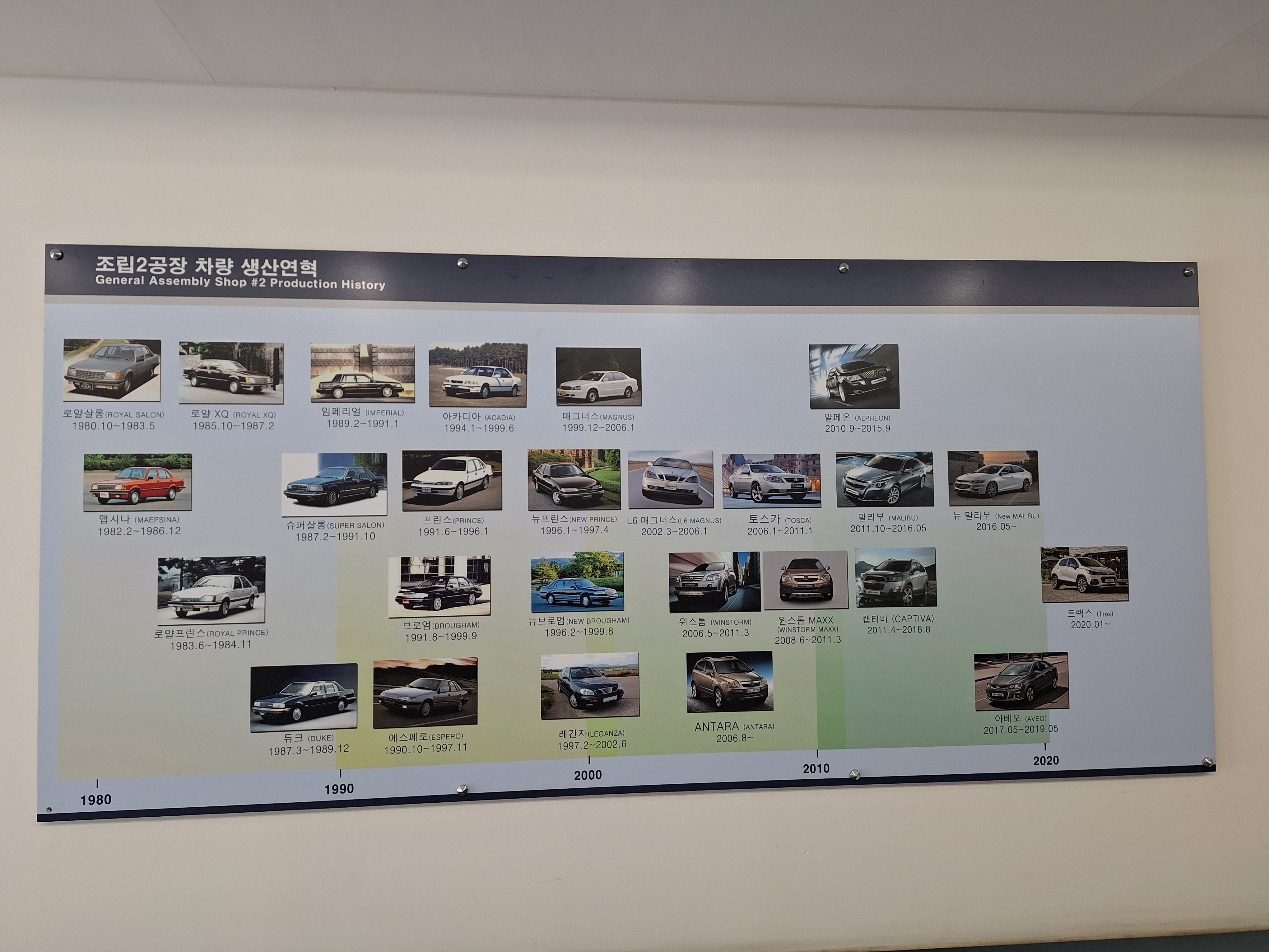 차체 2공장에서 생산되었던 차들. 안타라(ANTARA)는 GM대우 윈스톰 맥스의 수출용 모델.