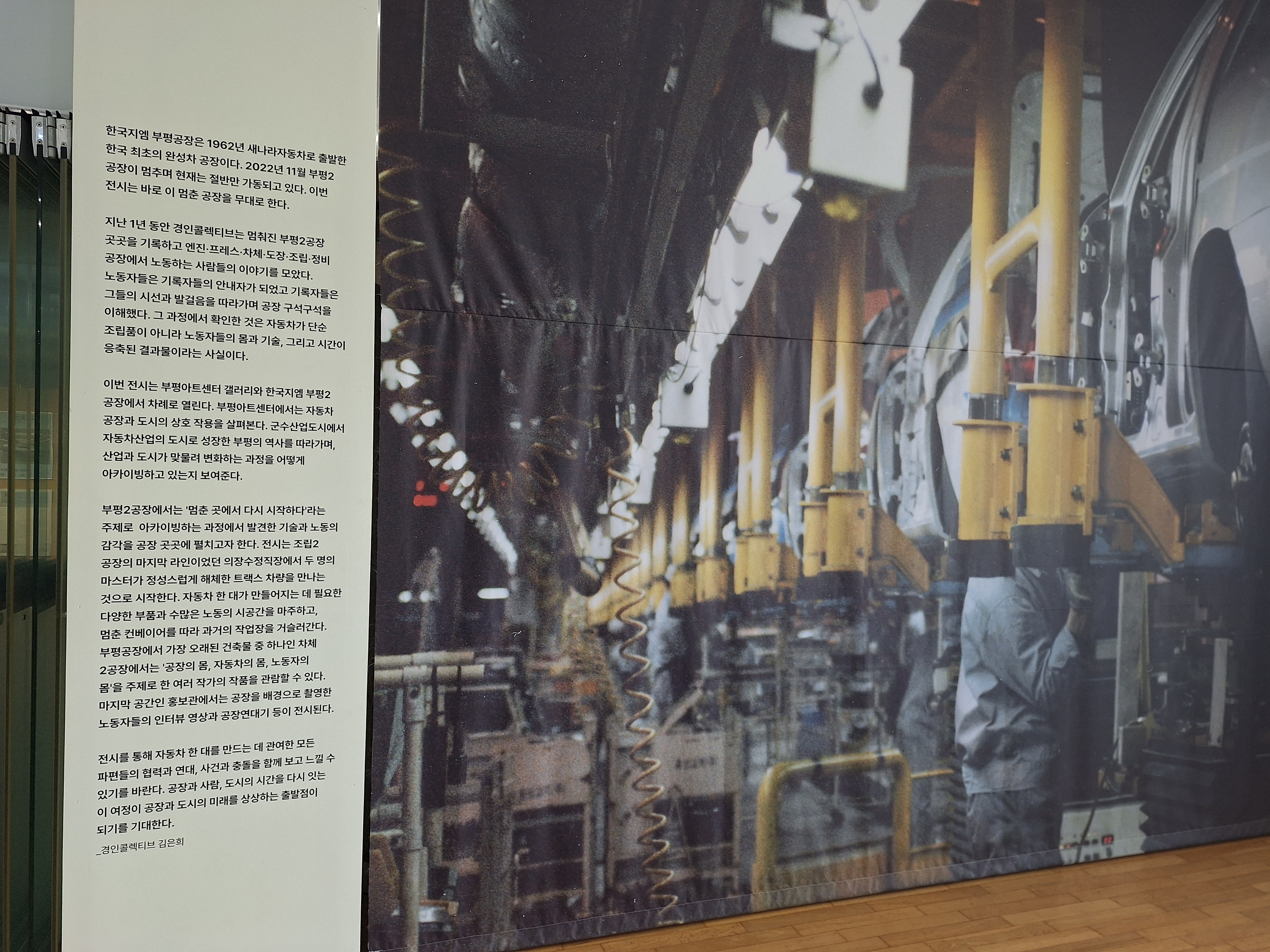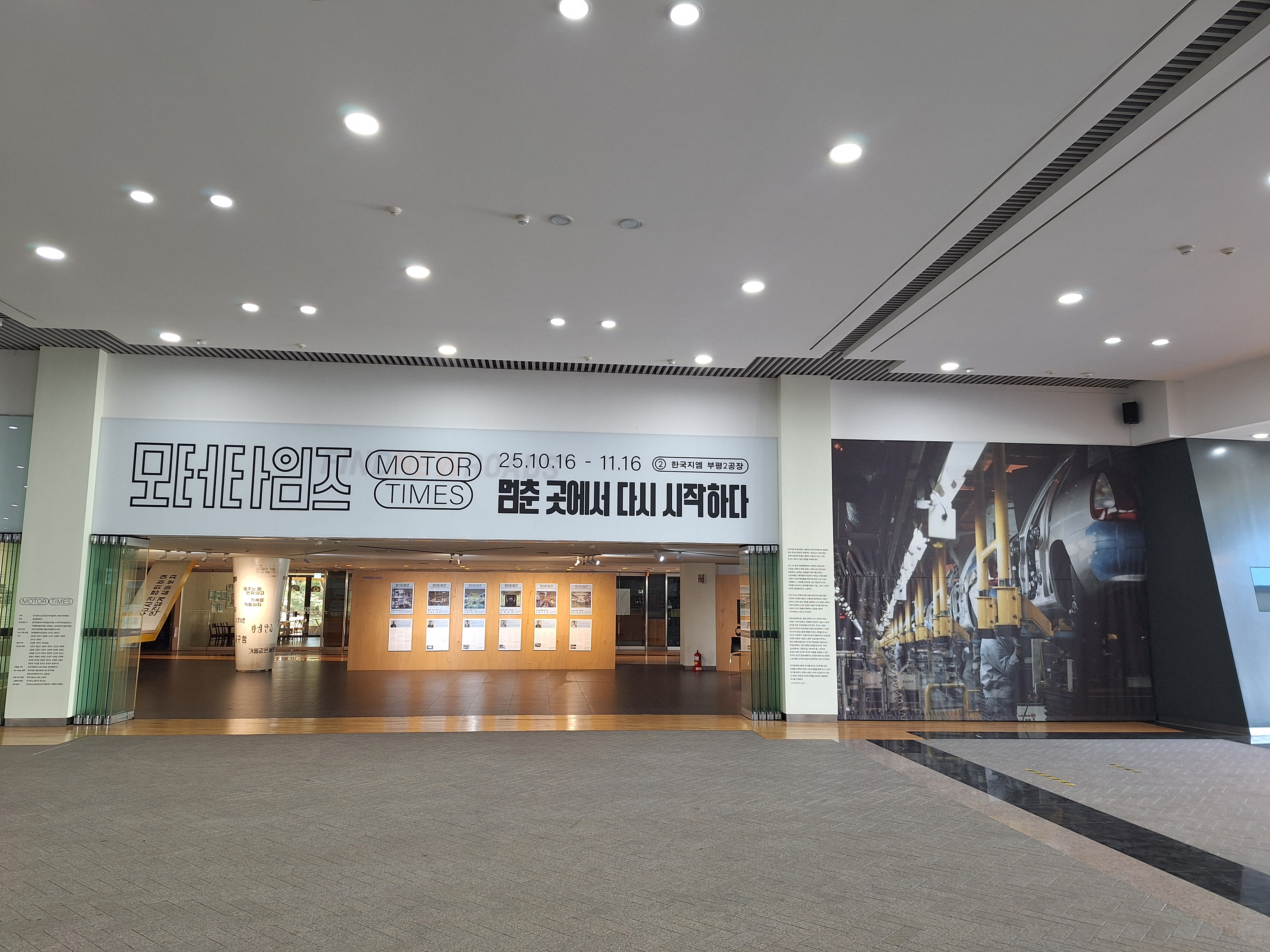 모처럼 맑고 따뜻한 가을 낮, 부평자동차공장 아카이빙 전시 <모터타임즈 - 멈춘 곳에서 다시 시작하다>에 다녀왔다.